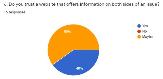 In order to kick off the direction of the design process, we created a survey to gain insight into how users ingest and view modern news. The survey contained questions aimed at outlining the users news consumption habits and how they trust their news sources.